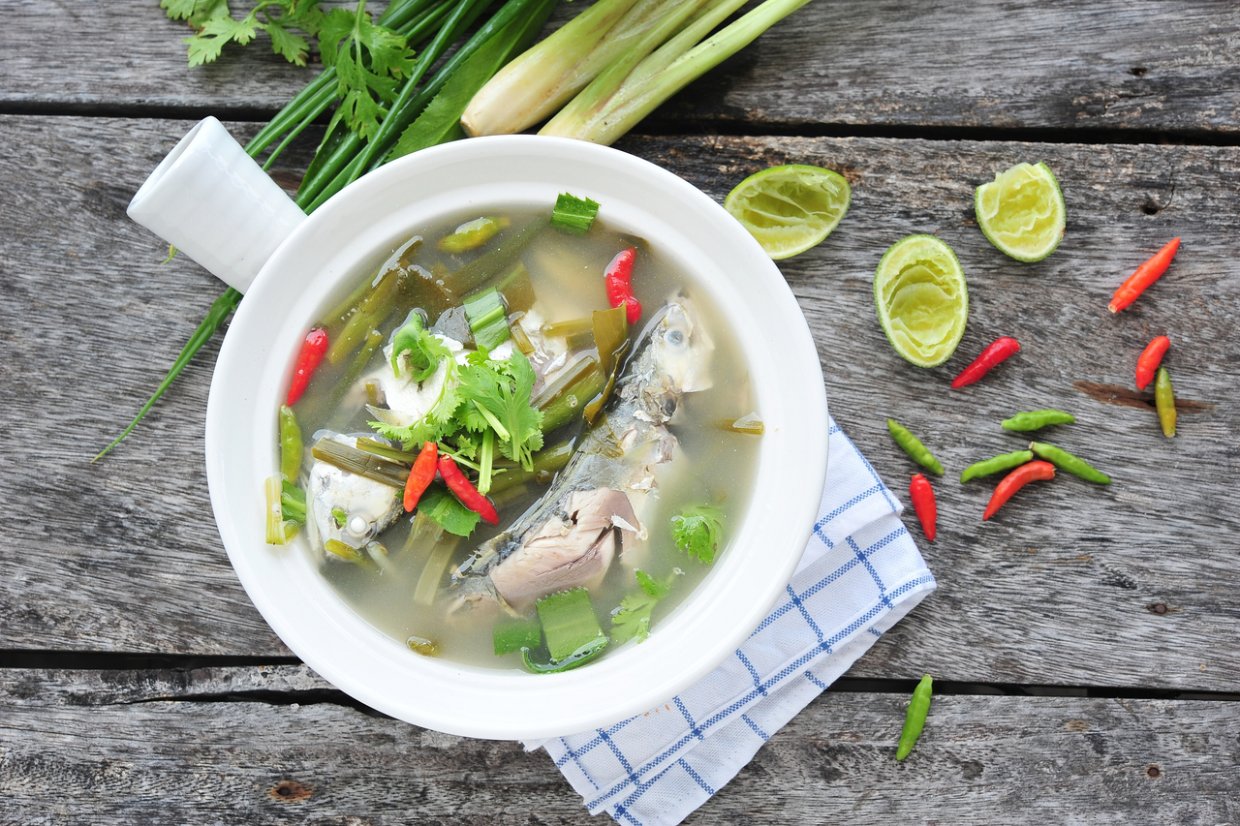 酸湯魚是柬埔寨當地很家常的一道菜,煮魚湯時會加入大蒜、檸檬草、豆芽菜等,並以糖、魚露以及鹽調味,吃起來酸辣又可口。